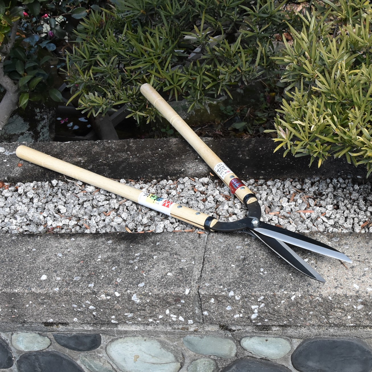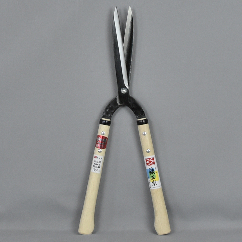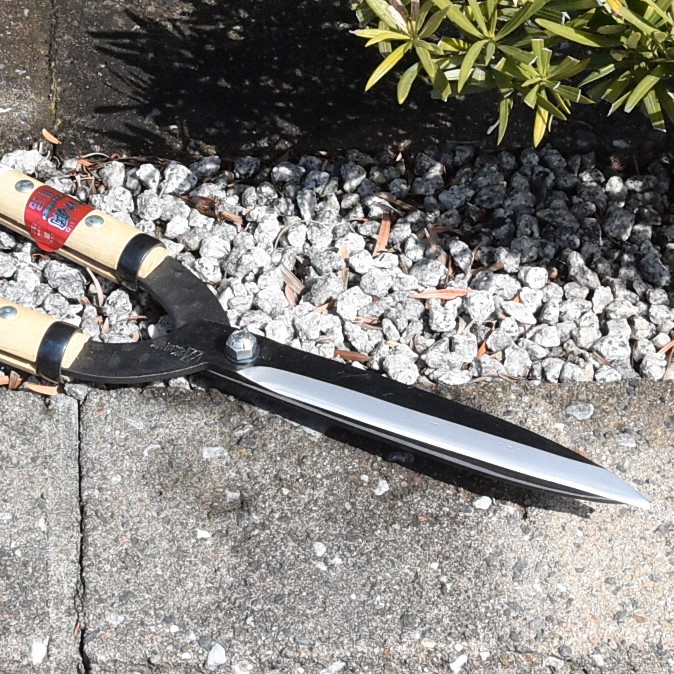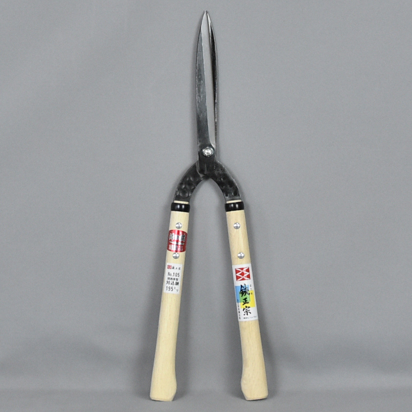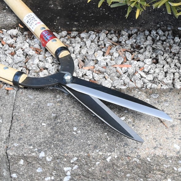 No.106より少し硬い物が切れます。細い刃先の京型は繁った樹の奥まで深く刈り込めます。