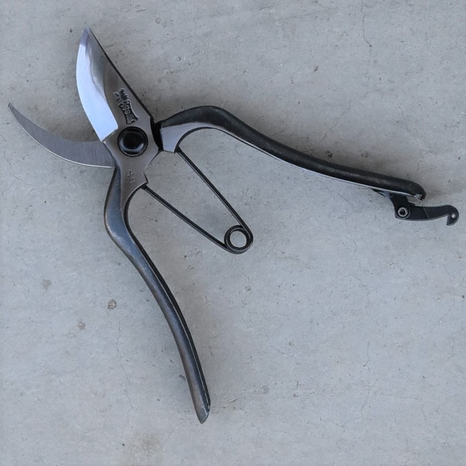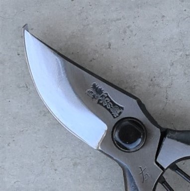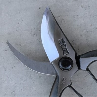 説明:左利き専用剪定鋏です。刃の形状がハマグリ形の為、刃先は細めの枝を、刃の根元でやや太めの枝も楽に切断できます。