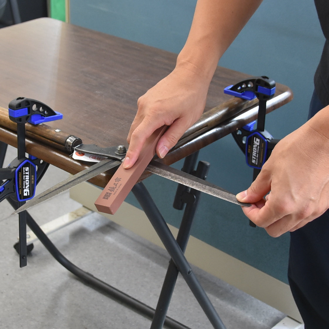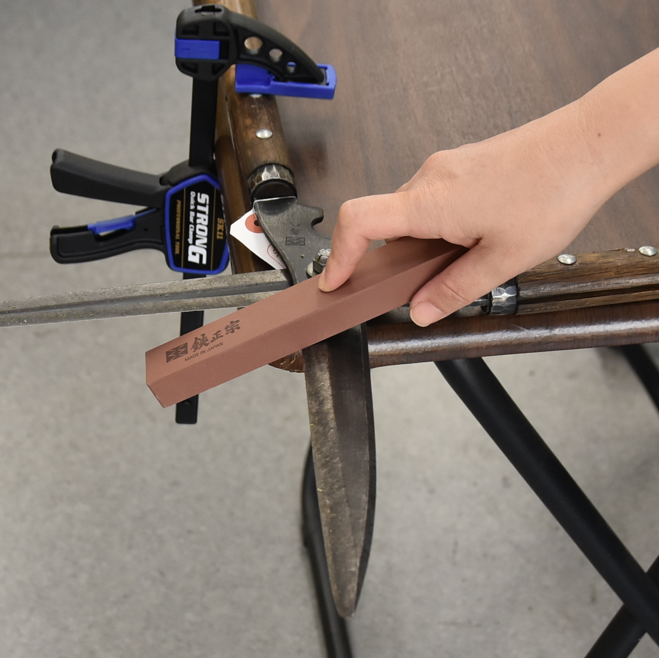 市販されている砥石は短いものが多く鋏を研ぐ前後のストロークが短く