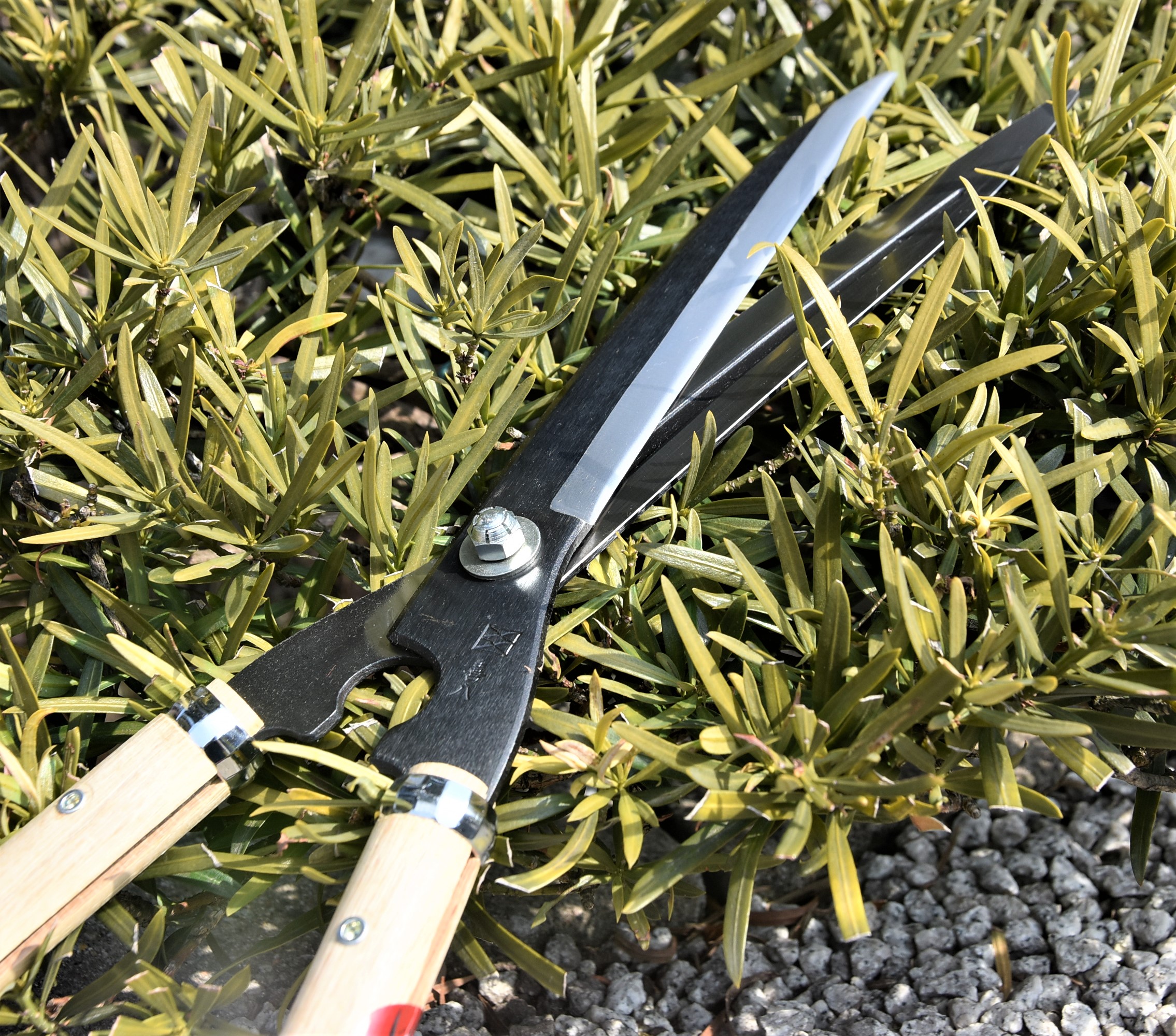 わん曲した刃が樹形に合わせて丸く刈り込めます。